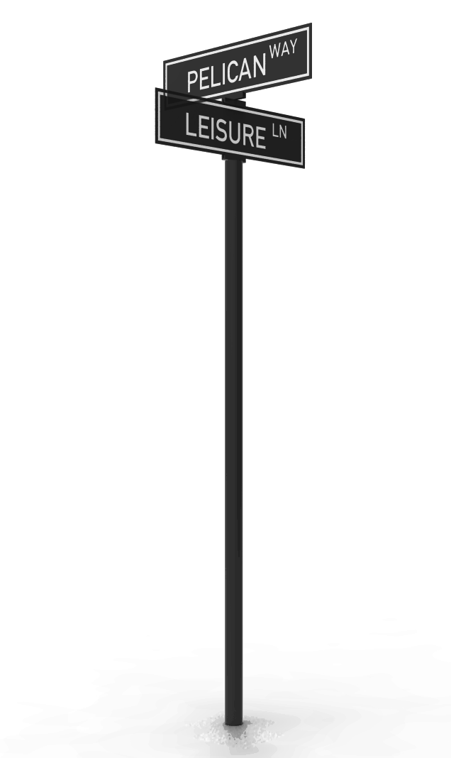 The Bellair Series is our premiere line of affordable street name signs. Name blade backs are painted to match the post color and decorative scrolls are optional to give a little extra flair to your next custom street name sign. The top mount style secures the signs on the top of the post. The coordination of regulatory signs, such as stop signs, speed limit signs, and warning signs are also available in matching frames. Complimentary decorative bases, post finials, and scrolls can be accommodated to further personalize each unit.