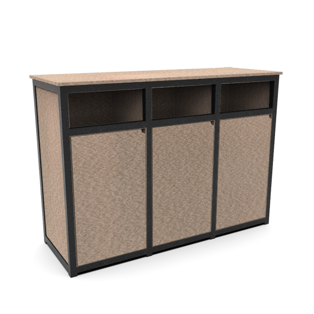 Defined by their clean lines and non-routed panels, the Classic Series triple front loading waste/ recycle receptacles are perfect for multiple waste streams.